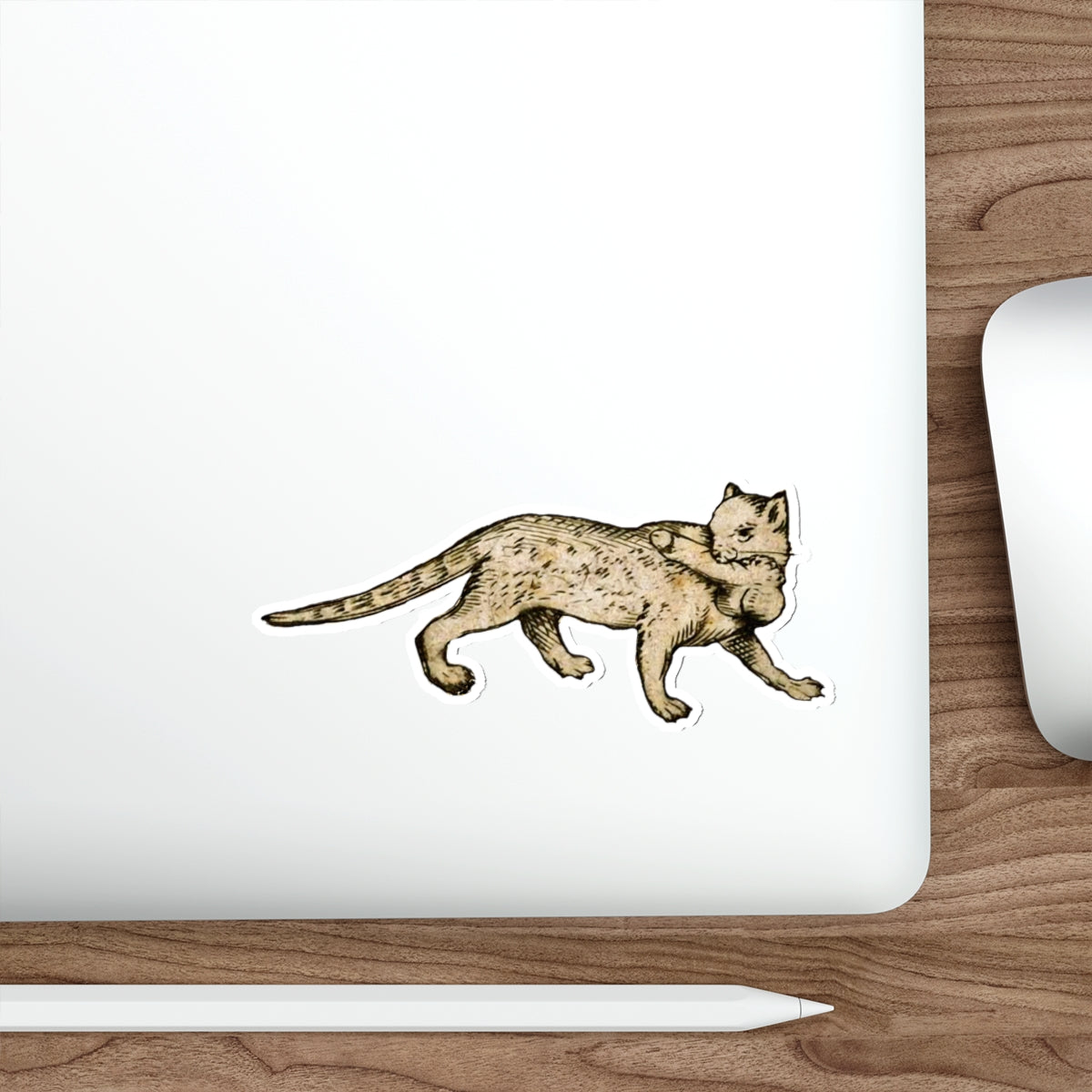 Medieval Cat Sticker – Cat Carrying Mouse – Quirky Medieval Marginalia Art – Weird History Aesthetic Sticker – Ars Jocularis