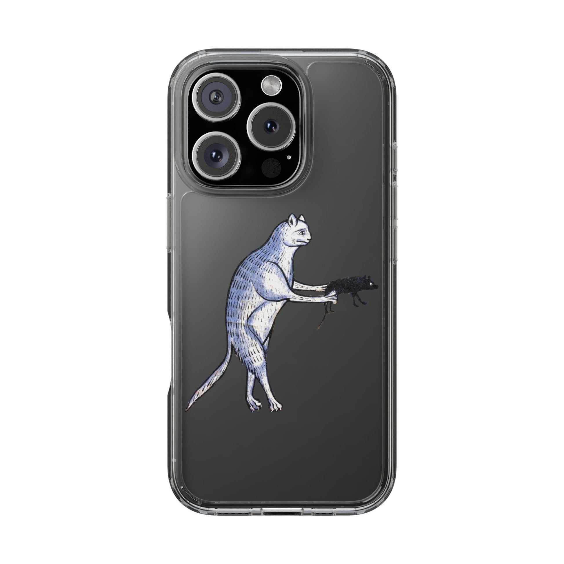 Straight from a medieval manuscript, this upright cat is clearly enforcing some serious rodent justice. Whether it’s an arrest, an awkward dance, or an attempt at rat-based performance art, we may never know. What we do know? This phone case is weird, wonderful, and just the right amount of unhinged.