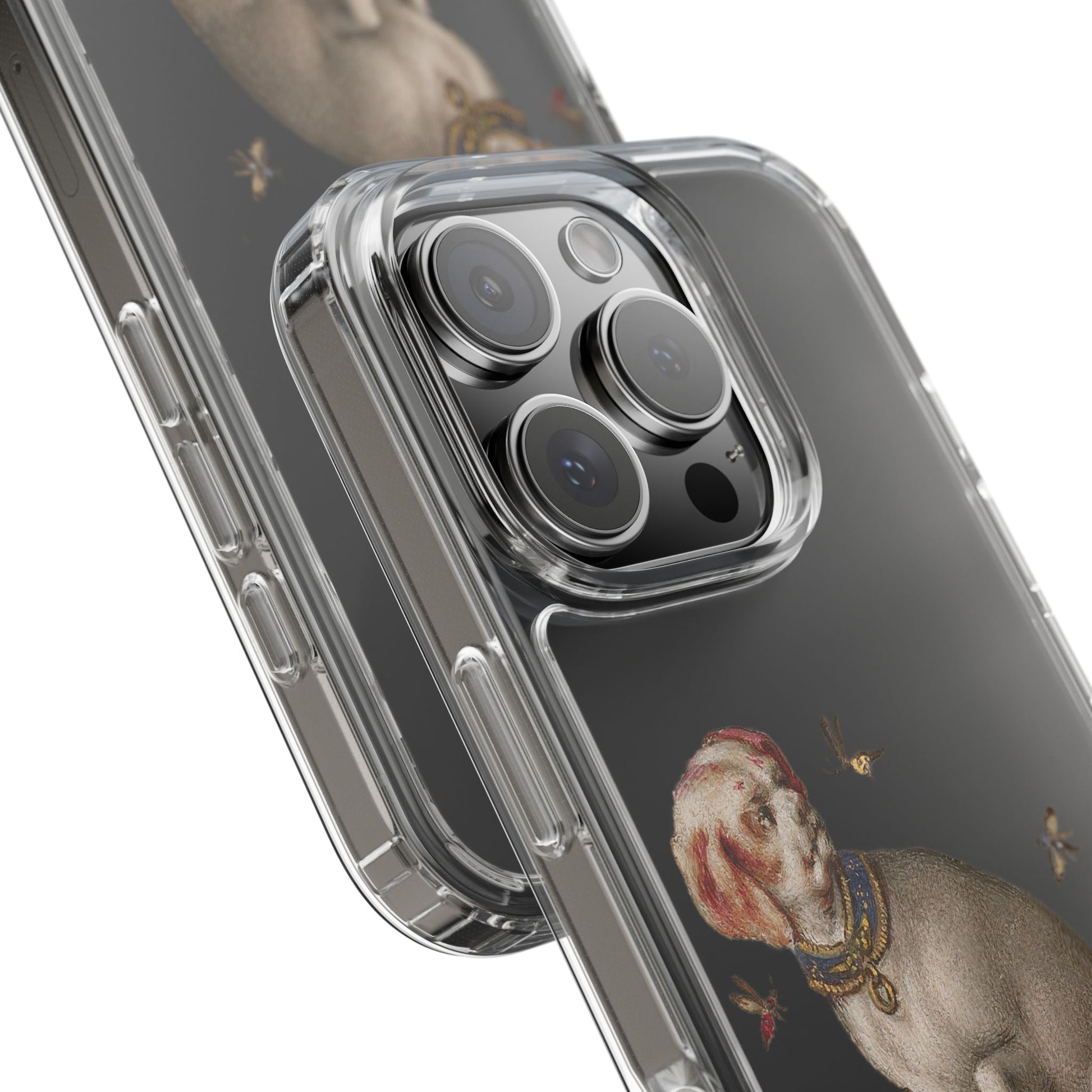 Regal Medieval Dog Phone Case – Vintage iPhone Cover with Crowned Dog & Bees – Whimsical Gothic Art Design