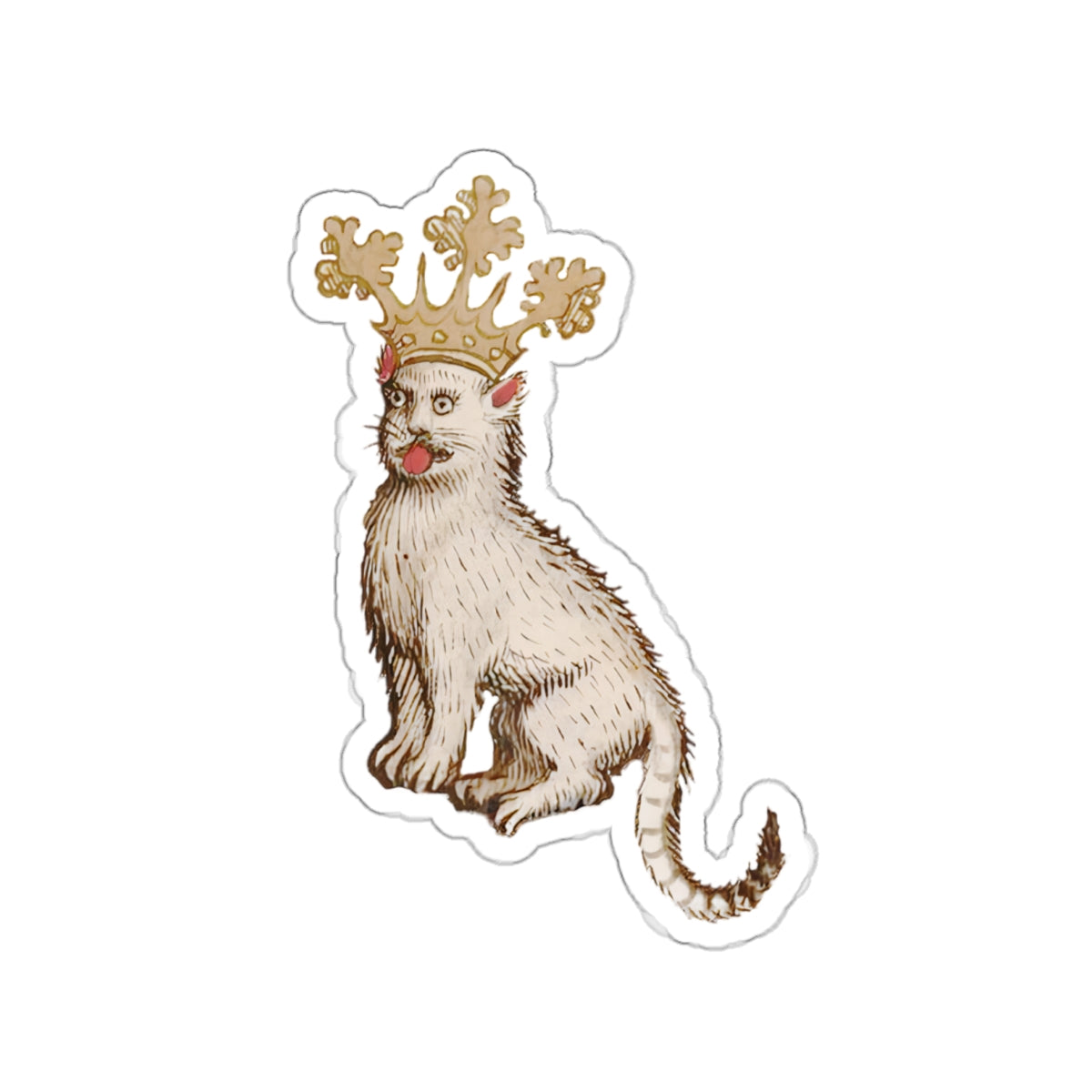 Medieval Crowned Cat Sticker - Funny Royal Animal Cover - Whimsical Manuscript Illustration - Unique Gift for Cat Lovers
