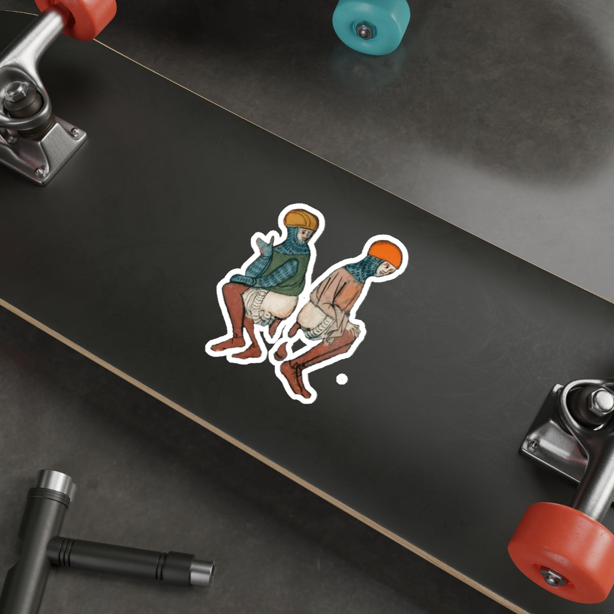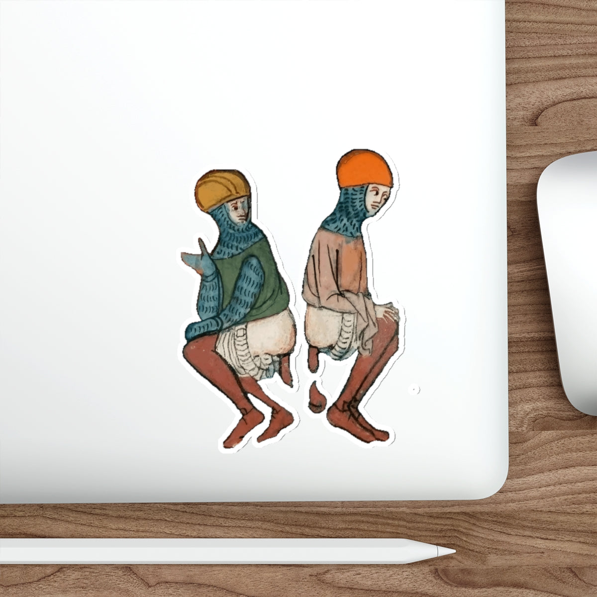 Back-to-Back Brilliance - Funny Medieval Knight Sticker - Weird Historical Art - Quirky Laptop Sticker - Manuscript Meme Gift for History Lovers - Whimsical Die-Cut Stickers for Laptop - Unique Art Stickers