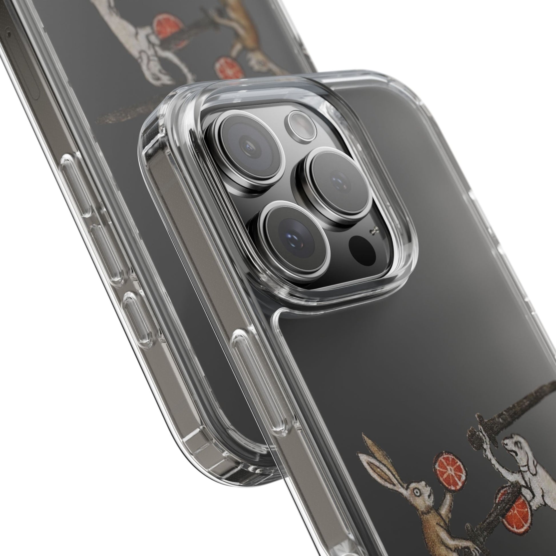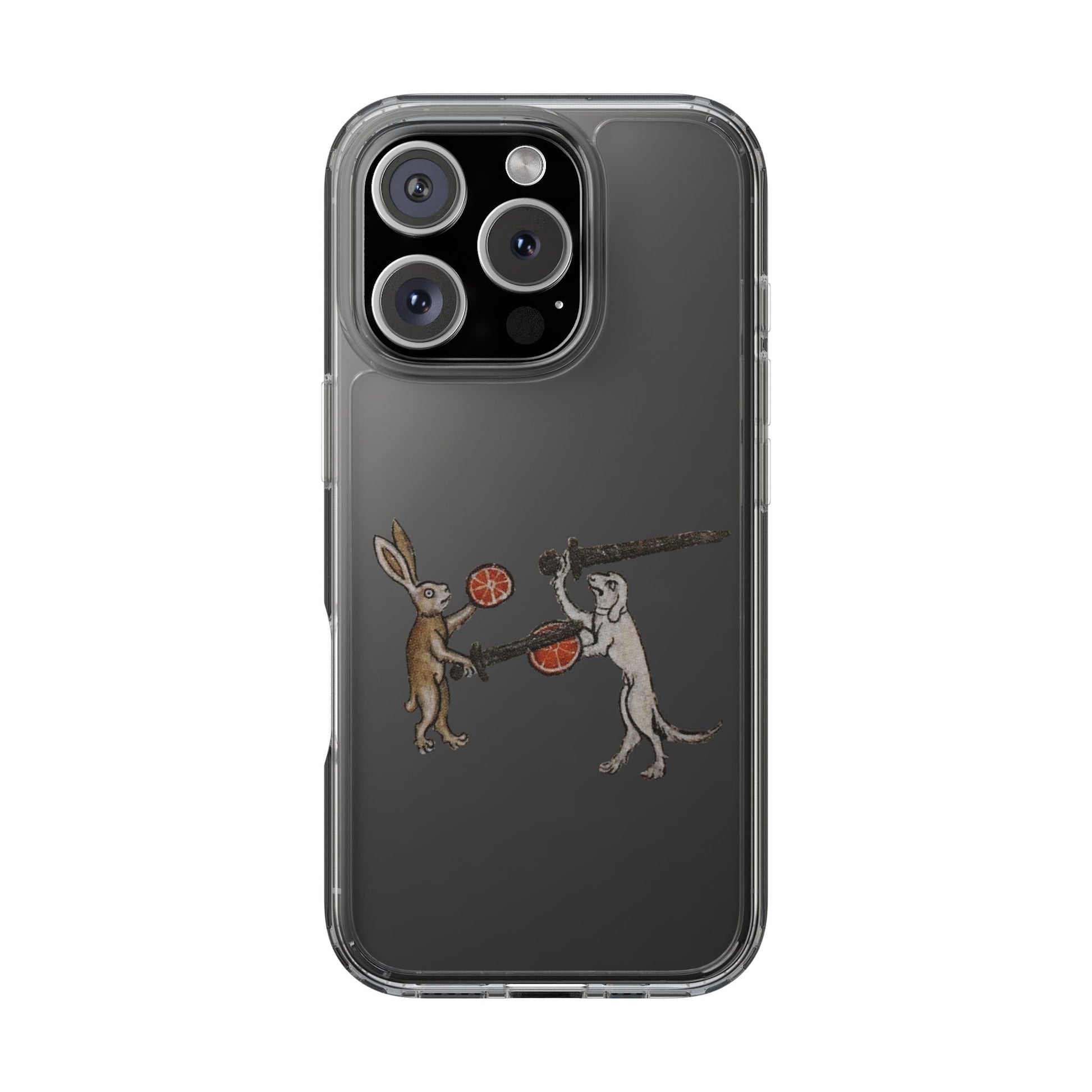 Fruit Fight – Medieval Bunny vs Dog Phone Case – Illuminated Manuscript Battle Scene – Weird Animal Combat Aesthetic
