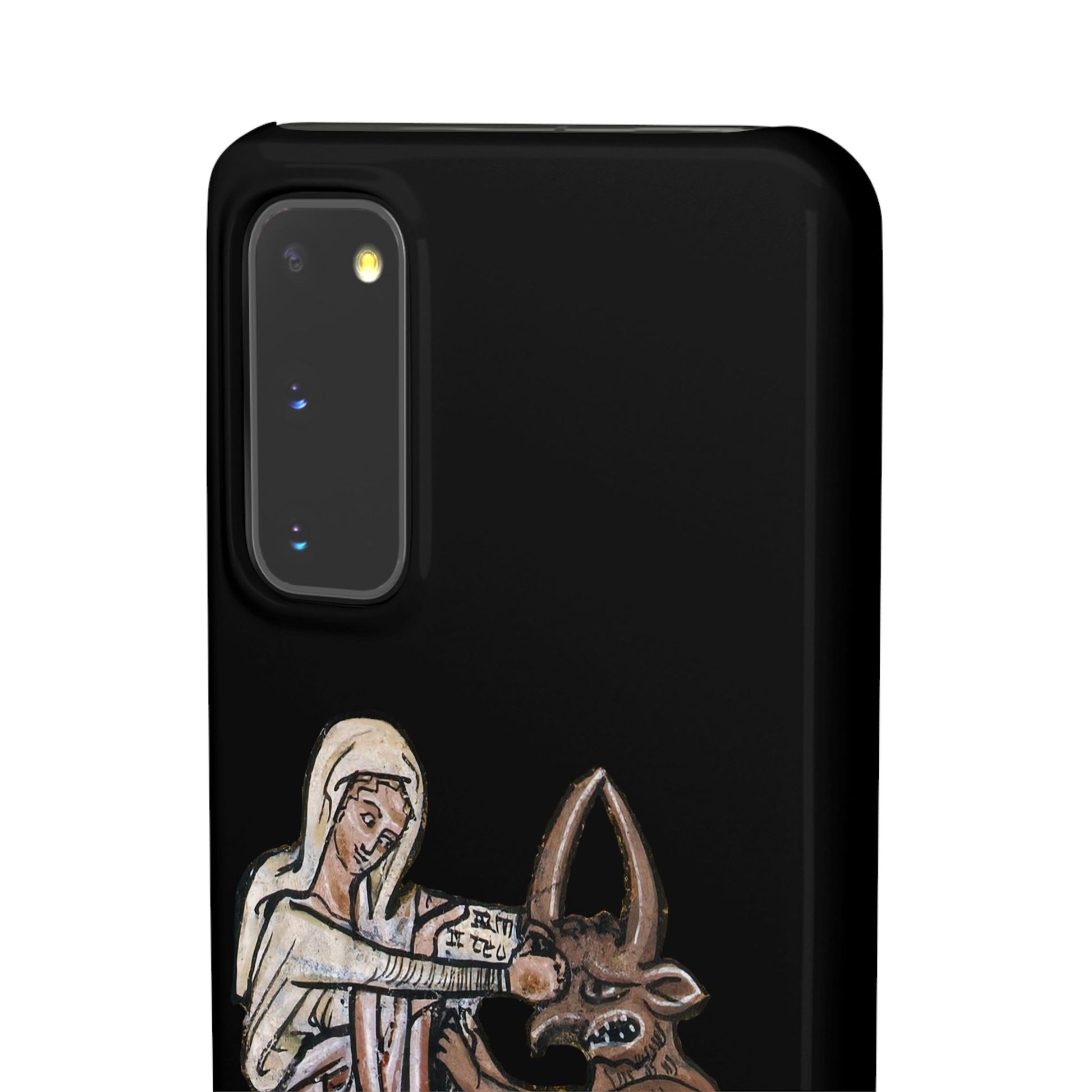 This phone case features an original illustration from a 13th-century manuscript, where a pious figure smacks a confused demon in the face with a scroll. Whether she’s exorcising evil or laying down holy facts, it’s the kind of chaotic energy your phone deserves.