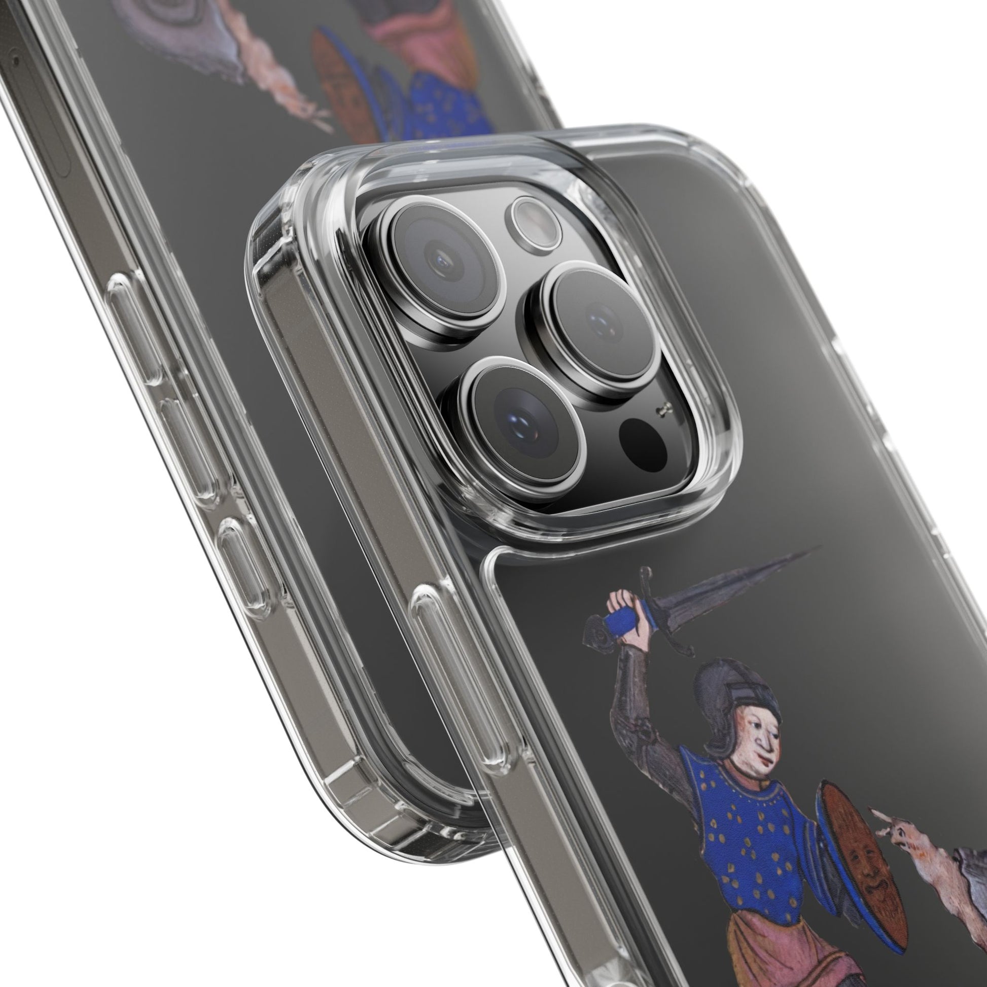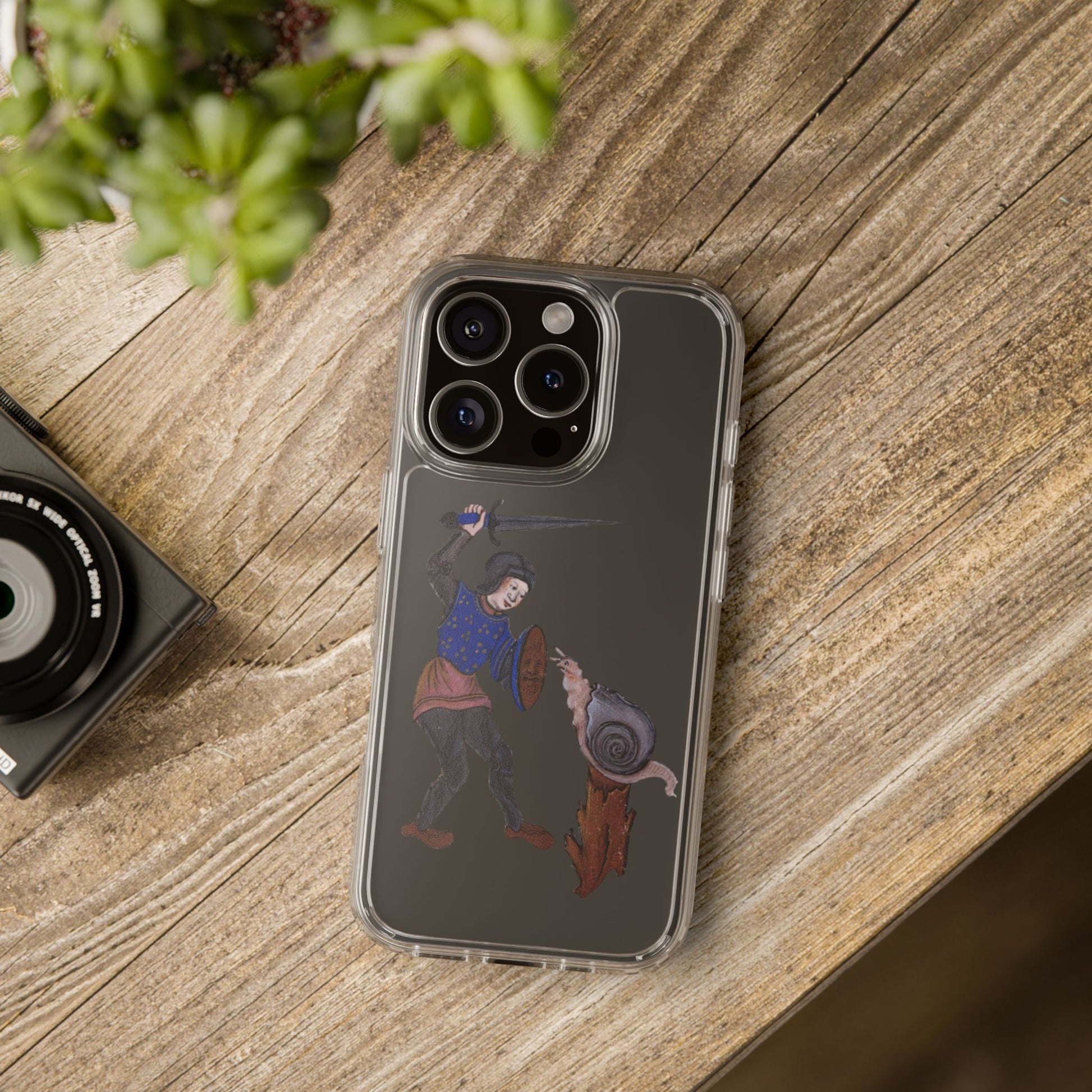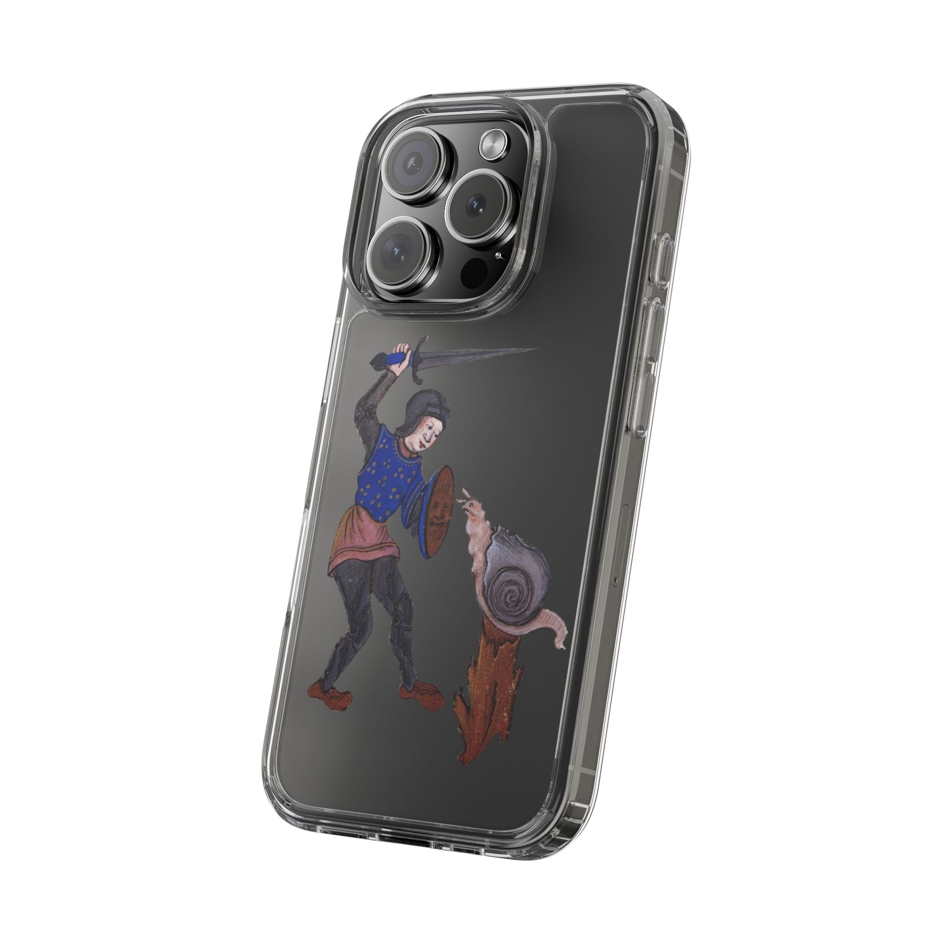 Knight vs Snail – Absurd Medieval Duel Phone Case – Illuminated Manuscript Meme Art
