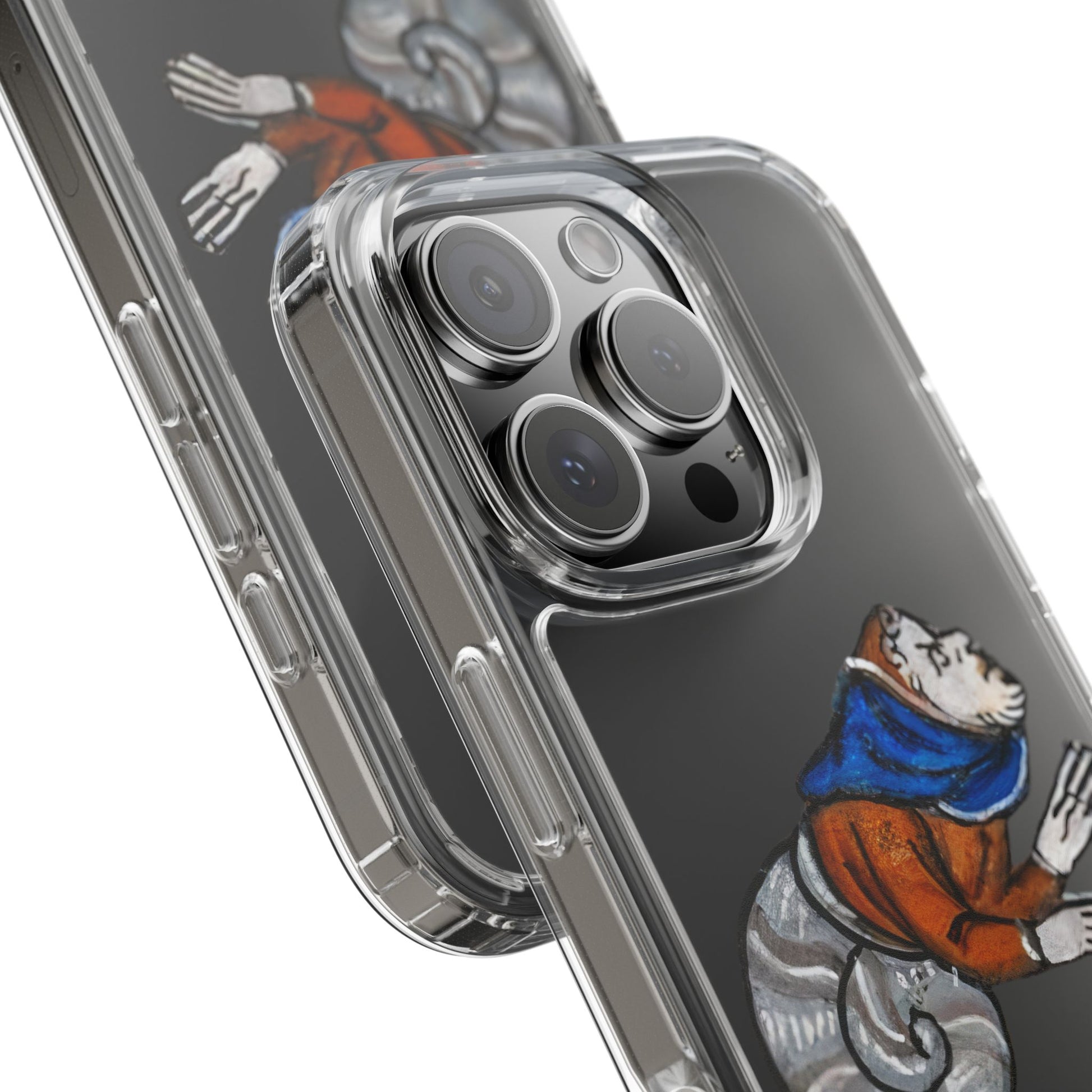 This medieval manuscript gem features a mysterious cloaked creature mid-blessing—or mid-plotting. With a snail shell, monk’s robe, and a deeply contemplative expression, he’s the perfect phone guardian for thinkers, schemers, and lovers of all things weird and illuminated.
